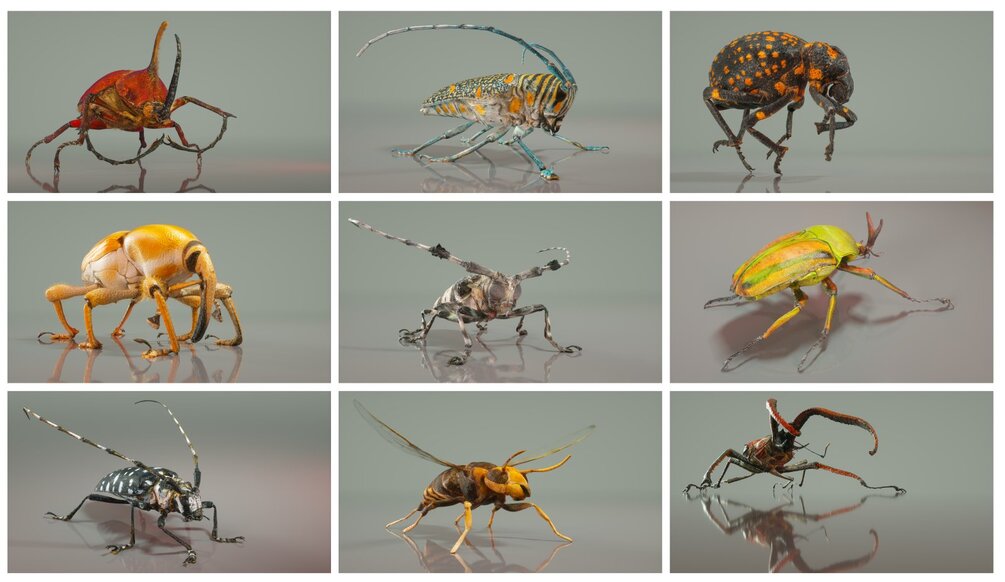 Our 3D scanned insect master collection features 9 highly detailed and realistic insect models. These models are perfect for use in architectural visualization, virtual reality, games, and rendering, adding a touch of nature to your digital creations.